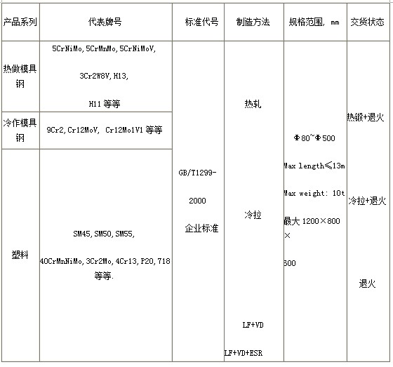 采用EAF+LF(VD)、EAF+ESR雙聯(lián)生產(chǎn)工藝,可按國內、國際先進(jìn)標準或用戶(hù)要求組織生產(chǎn)各種用途的工模具鋼產(chǎn)品,鋼純潔度高,P、S、O、H含量低,夾雜物少,碳化物分布均勻,性能穩定,疲勞壽命高,實(shí)物質(zhì)量達到國際同類(lèi)產(chǎn)品實(shí)物水平,多次受到用戶(hù)的一致好評。